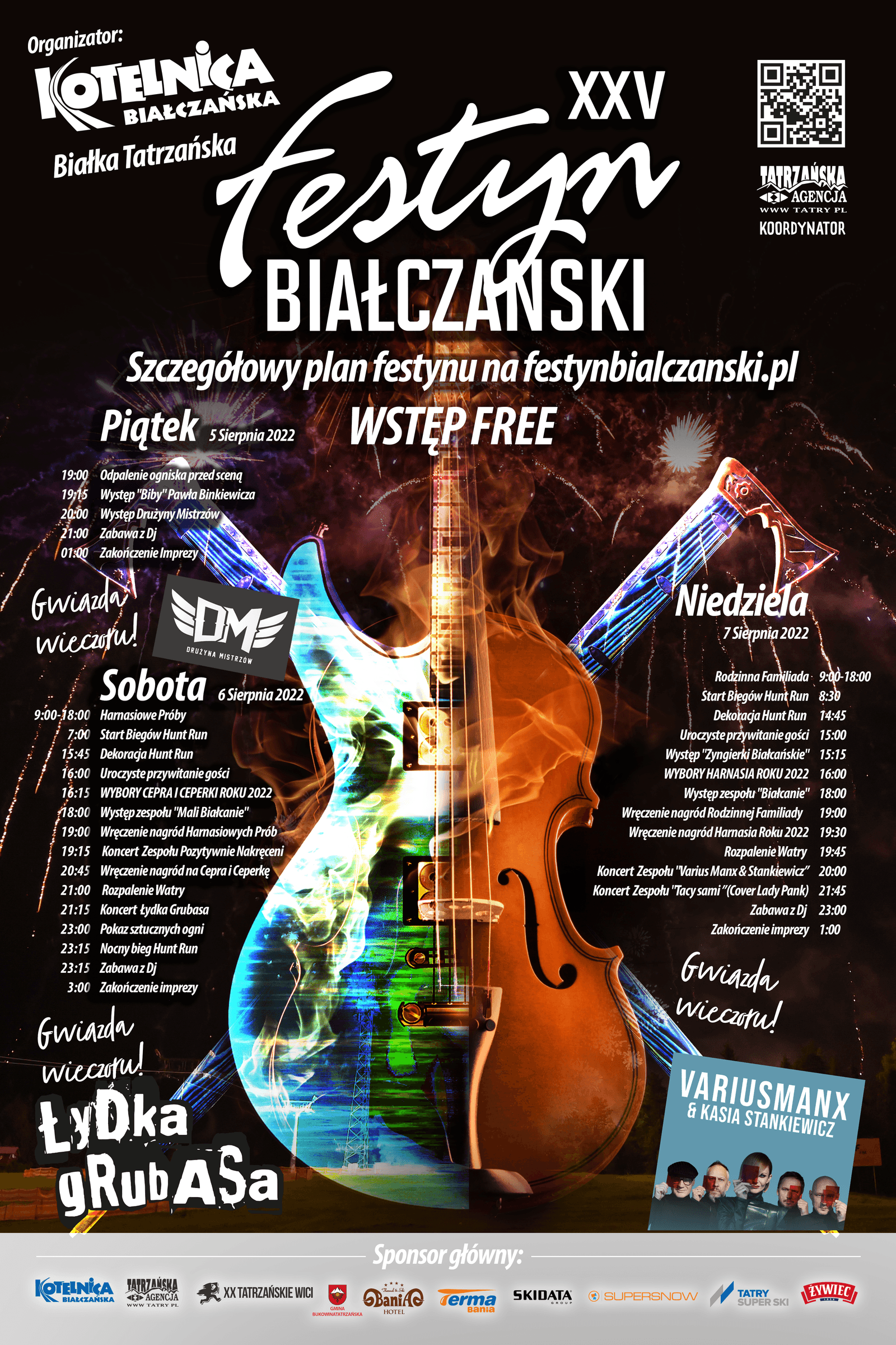 Przez pandemię Covid-19 rok temu odbył się w okrojonej formie, a w 2020 roku musieliśmy z niego całkowicie zrezygnować. Tym bardziej cieszy nas fakt, że już 5 sierpnia możemy Was zaprosić do Białki na festyn jak kiedyś! Będzie jak zawsze radośnie i aktywnie. Przez trzy dni – 5-7 sierpnia pod szczytem Kotelnicy będzie na Was czekało mnóstwo atrakcji, zarówno dla tych najmłodszych jak i starszych. Będzie więc zabawa w pianie, będzie śnieg w środku lata, będą wybory Cepra i Ceperki, a także Harnasia Roku, będą występy zespołów regionalnych oraz zaproszonych gwiazd. W piąt ekzagra Drużyna Mistrzów oraz Paweł "Biba" Binkiewicz ,sobotę zagra Łydka Grubasa, a w niedzielę Varius Manx.