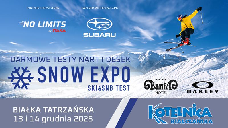 Najnowszy sprzęt na sezon 2025/26, narty, deski, kaski i gogle kilkunastu producentów będziecie mogli testować na stokach Kotelnicy Białczańskiej podczas SNOW EXPO SKI&SNB TEST.