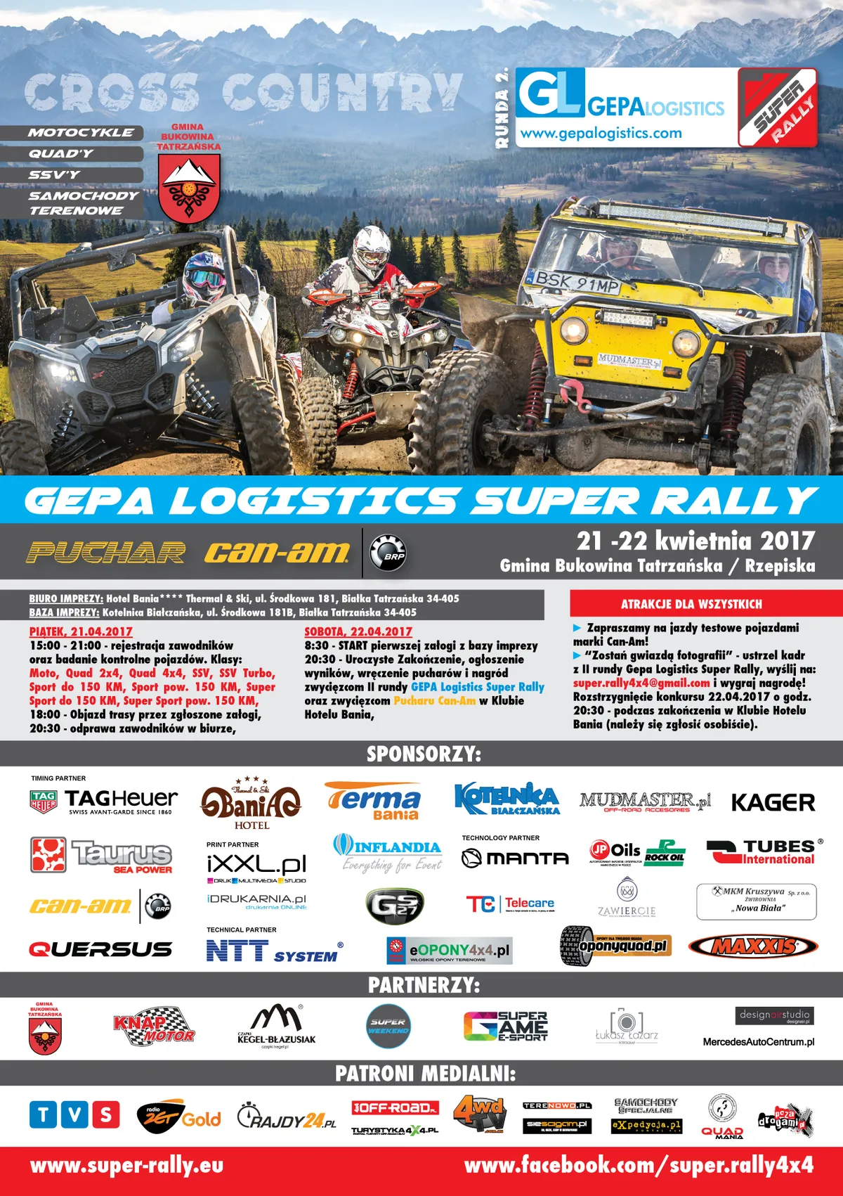 Podziękowania dla Sponsorów i Partnerów imprezy: Gepa Logistics, Gmina Bukowina Tatrzańska, TAG Heuer, Taurus Sea Power, Can Am, iXXL Studio Reklamy Kielce, iDrukarnia.pl, NTT System, Manta, Inflandia, Mudmaster.pl, Tubes International, Hotel Bania**** – Thermal & Ski, Terma Bania, Kotelnica Białczańska, MKM Kruszywa Sp. z o.o. Żwirownia “Nowa Biała”, JP Oils Eneos, Kager, Huta Szkła Zawiercie, Telecare S.A., Quersus, oponyquad.pl, MAXXIS, eopony4x4.pl, MercedesAutoCentrum.pl, Czapki Kegel-Błażusiak, Knap Motor, Dom Wypoczynkowy u Czerników w Białce Tatrzańskiej.